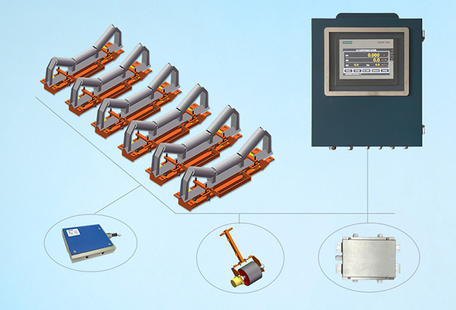 12只SPH高精度动载型抗侧力传感器,外廓平行四边形,内部三重梁结构,每只传感器均为 1 个单独的信号进入采集单元单独数据计算,可有效抵消侧向力及两个传感器之间的内部扭力,确保动态计量效果前提下最大限度抵消皮带跑偏及物料偏载影响。