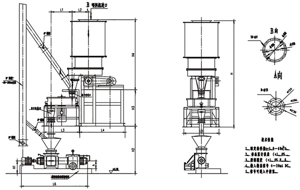 采用我公司专利型FK螺旋输送泵,其变距螺旋形成的动态料封与出料止回阀构成锁风双保险,可以在较高的送料气体压力下有效送料并可靠锁风,防止气体窜入计量秤,以保证转子秤系统的喂料计量精度。